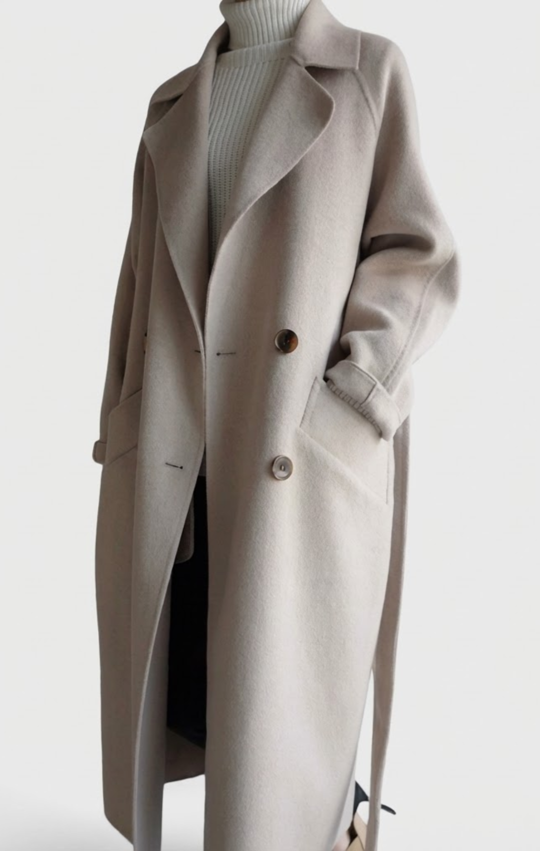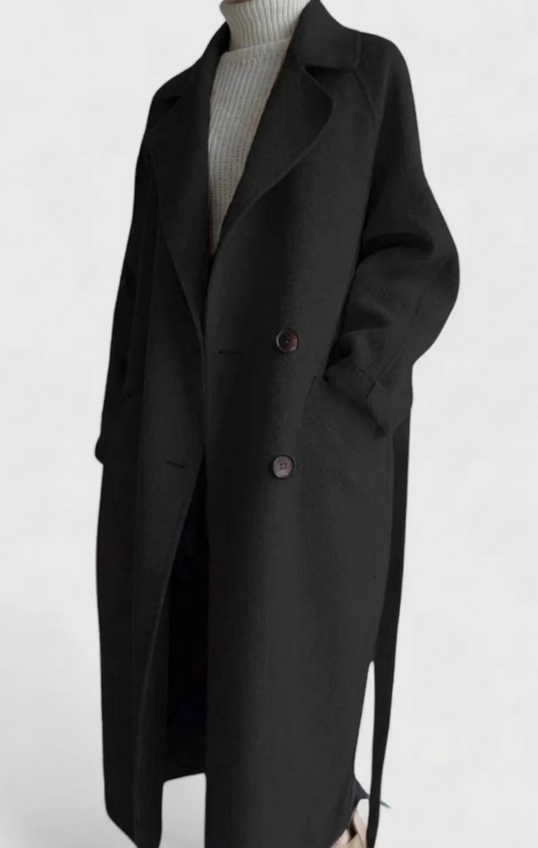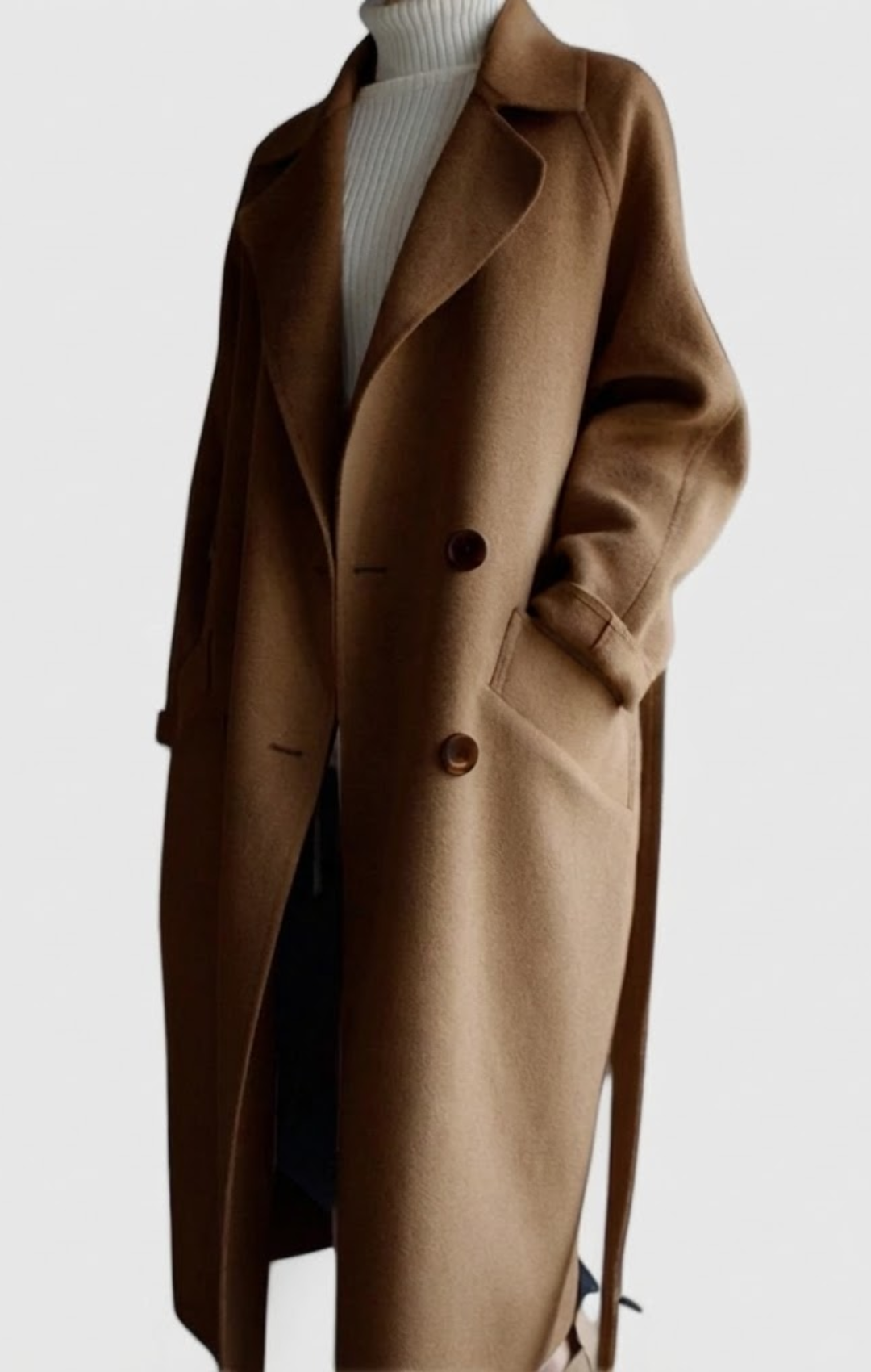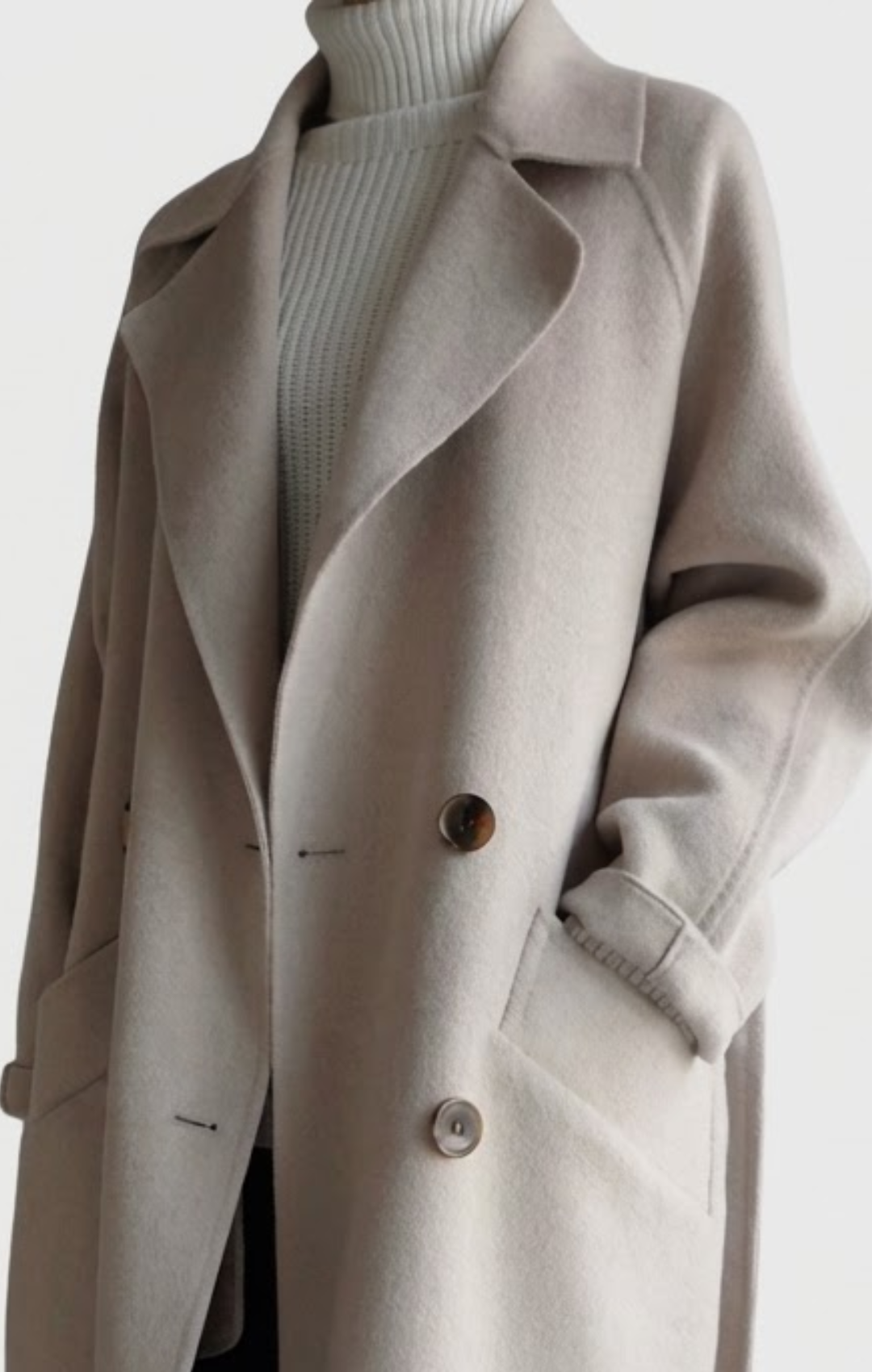 Este elegante abrigo combina un diseño minimalista con un estilo impecable. Con su largo clásico, textura suave y silueta elegante, es la elección perfecta para la mujer moderna que valora la comodidad y la clase.